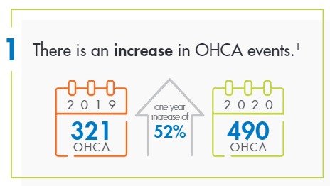 1. There is an increase in OHCA events. (Increased 52% in one year from 321 in 2019 to 490 in 2020)