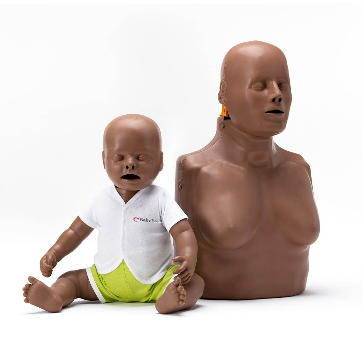 The Starter Pack includes 1 CPR Taylor® 3-in-1 adult male, adult female, and child manikin and 1 Baby Tyler® infant manikin.