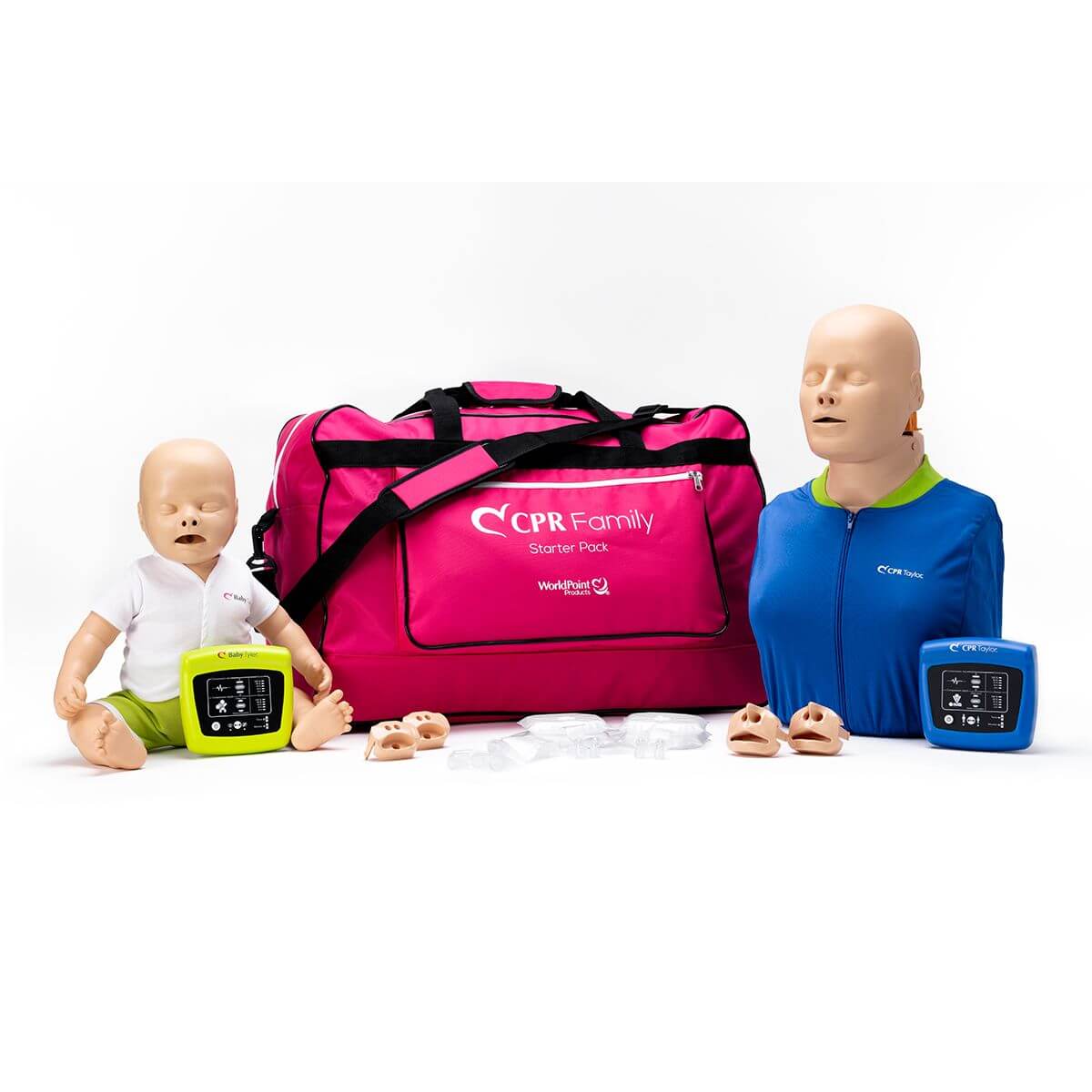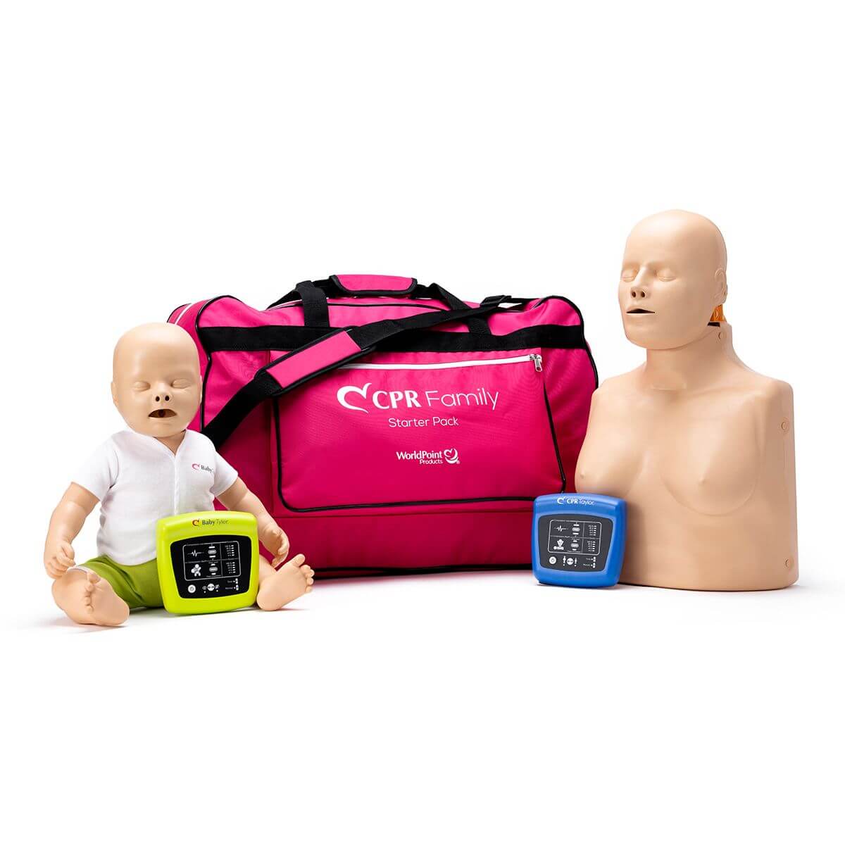 The Starter Pack includes 1 CPR Taylor® 3-in-1 adult male, adult female, and child manikin and 1 Baby Tyler® infant manikin.